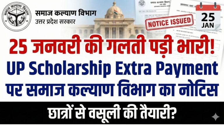 25 जनवरी की गलती पड़ी भारी! UP Scholarship Extra Payment पर समाज कल्याण विभाग का नोटिस